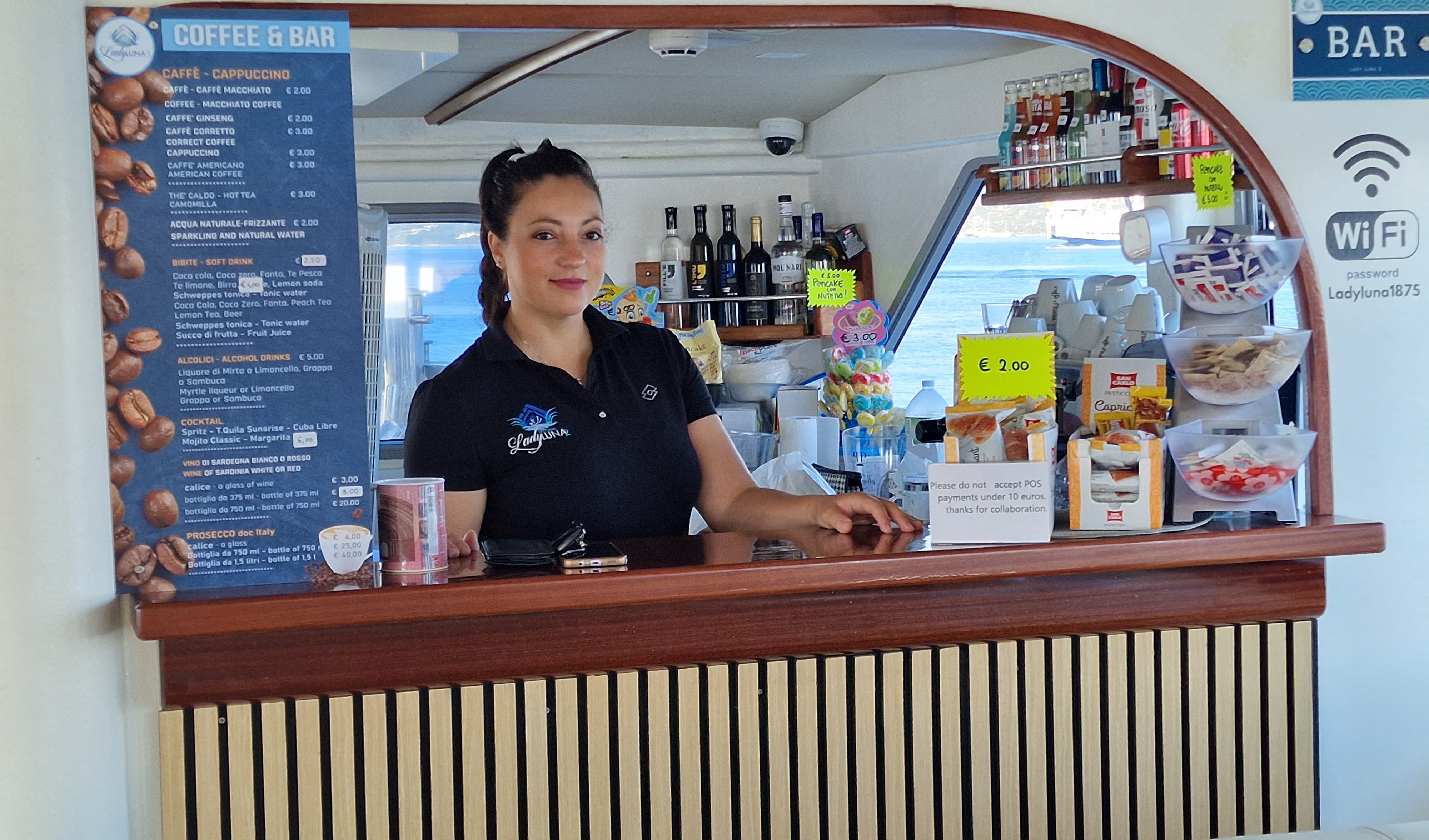 E' possibile acquistare a bordo il menù del primo del giorno ( pasta con gamberi 10€ )